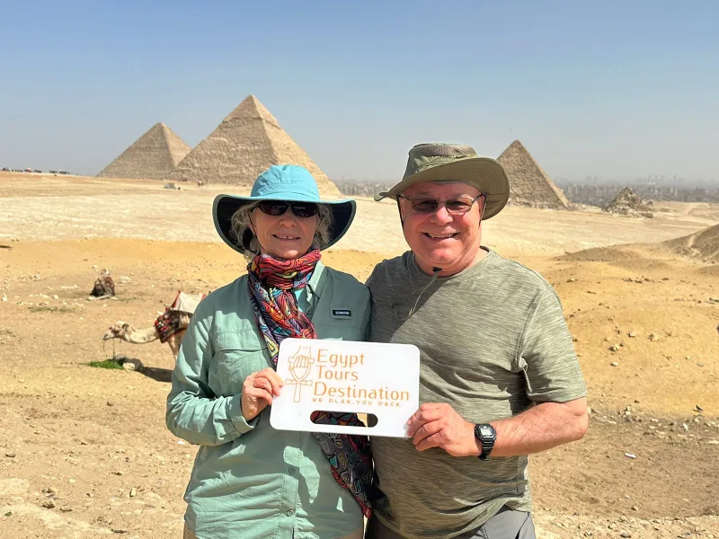 Start your luxury, hassle-free day with a warm welcome from an expert Egyptologist guide from Egypt Tours Destination. Begin at the Giza Plateau, entering through the Great Gate, leading to the eco-friendly Giza Visitors Center. At the Panoramic Point, capture breathtaking views of the pyramids—Khufu, Khafre, and Menkaure—all in one frame. Walk between the pyramids, visit the Great Pyramid of Khufu, and see the Pyramid of Khafre with its original limestone casing. Explore the Valley Temple, where the king was mummified, and end at the Great Sphinx—a 4,500-year-old guardian of the plateau.